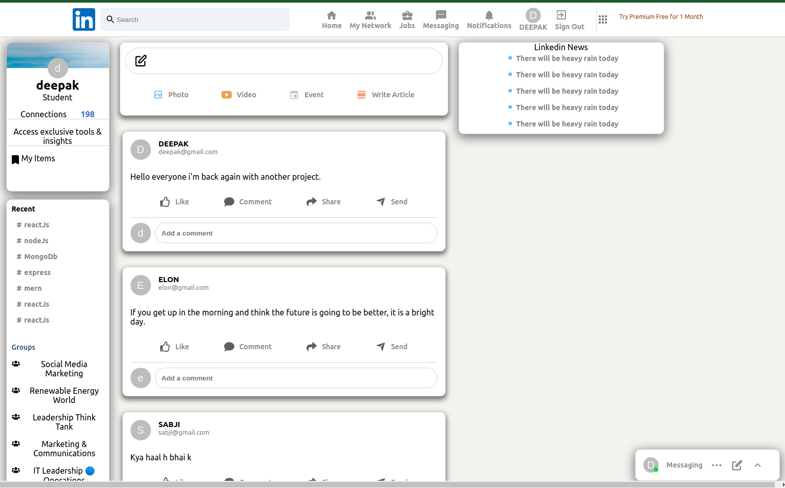 My name is Deepak Kaushal .I have done my Engineering in Computer Science. I am a Full Stack Engineer 🧑🏻💻 having experience with technologies like React,Nodejs,Express,MongoDB,PostgreSQL,Git,etc.I enjoy exploring new technologies & building things from scratch 🏗️.These days I'm working on Full Stack projects. You'll find 🔭 all my projects or any information about me on this website.